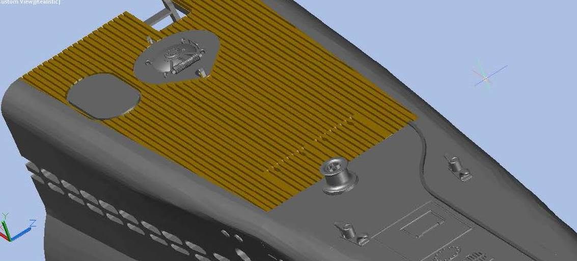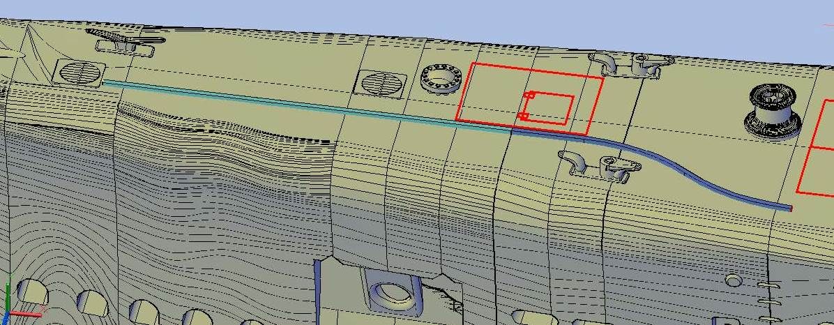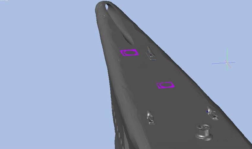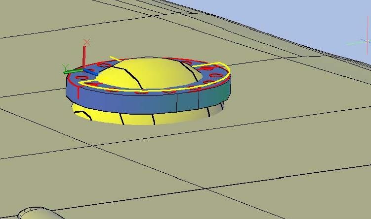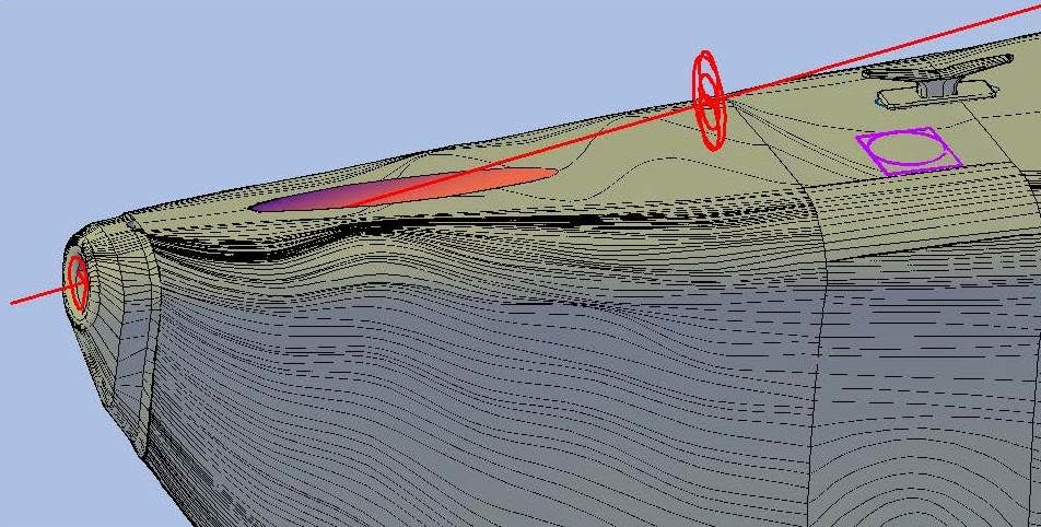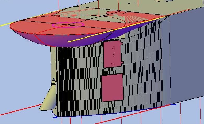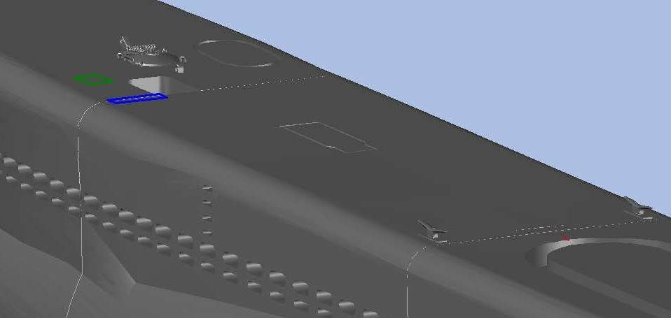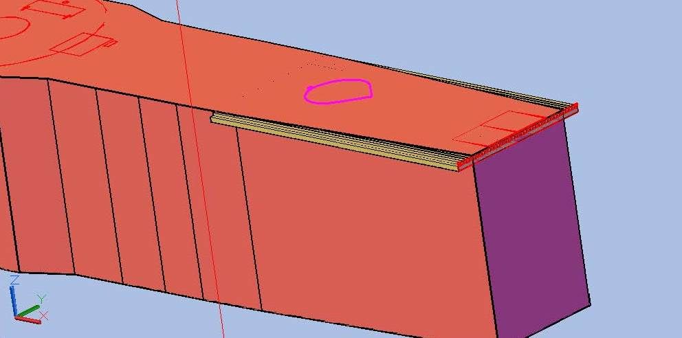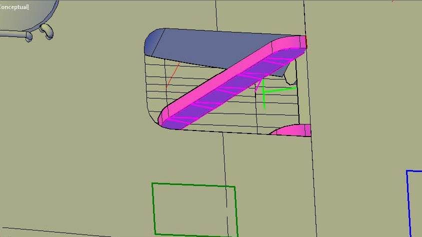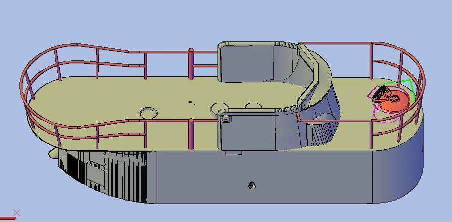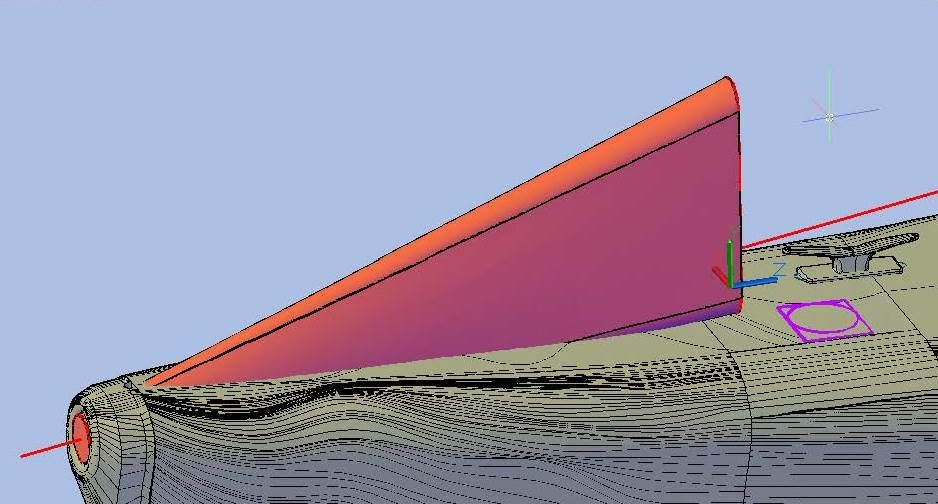 I then joined it to the deck. In the image below you can see the difficulty of cutting an object on a curved surface, as you can still see the outline of the oval buoy in Conceptual Visual style. This is because the deck surface and the surface of the extruded polylines wasn’t exactly the same, even though I traced the deck points to make the polylines.