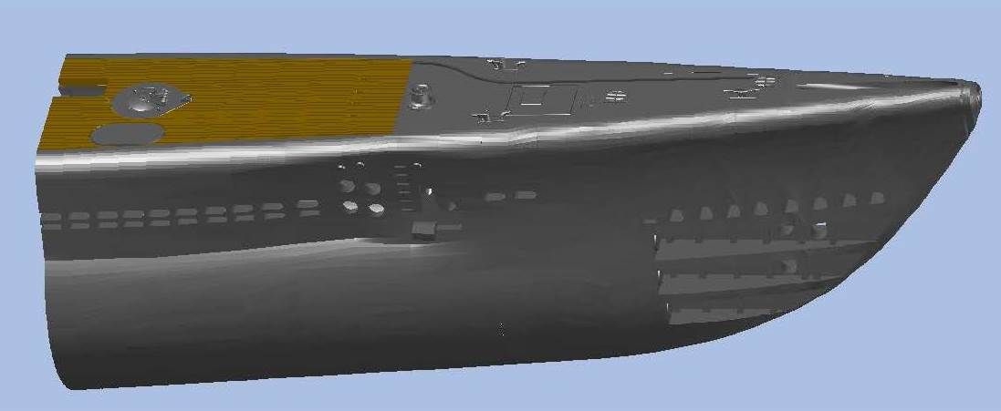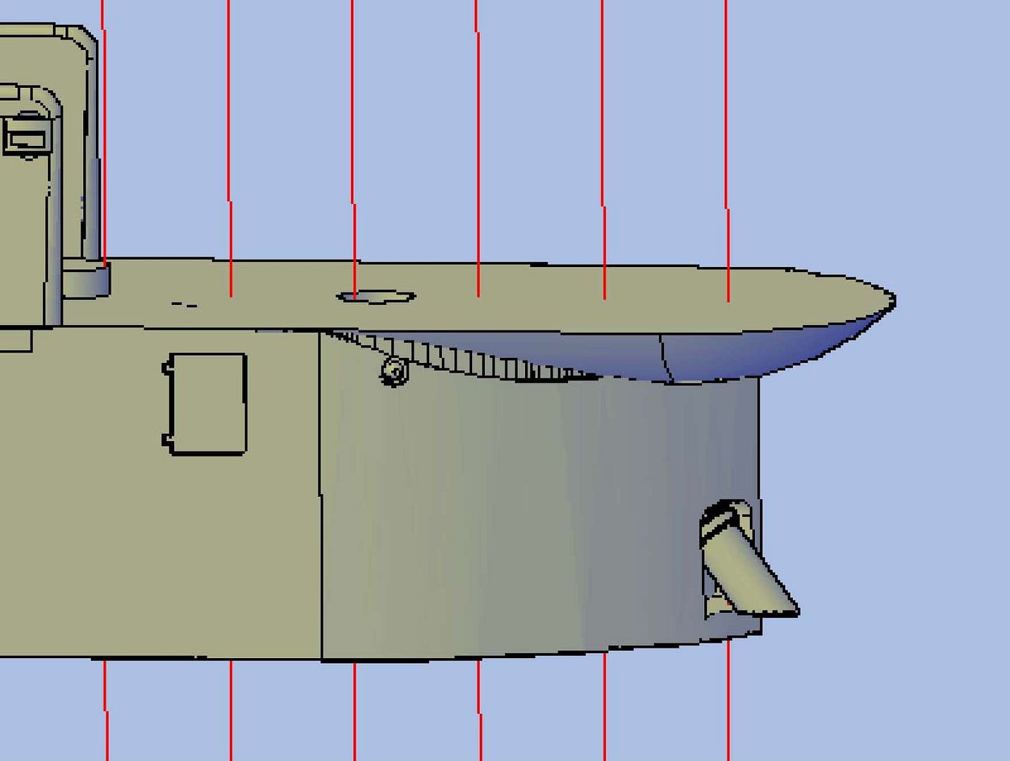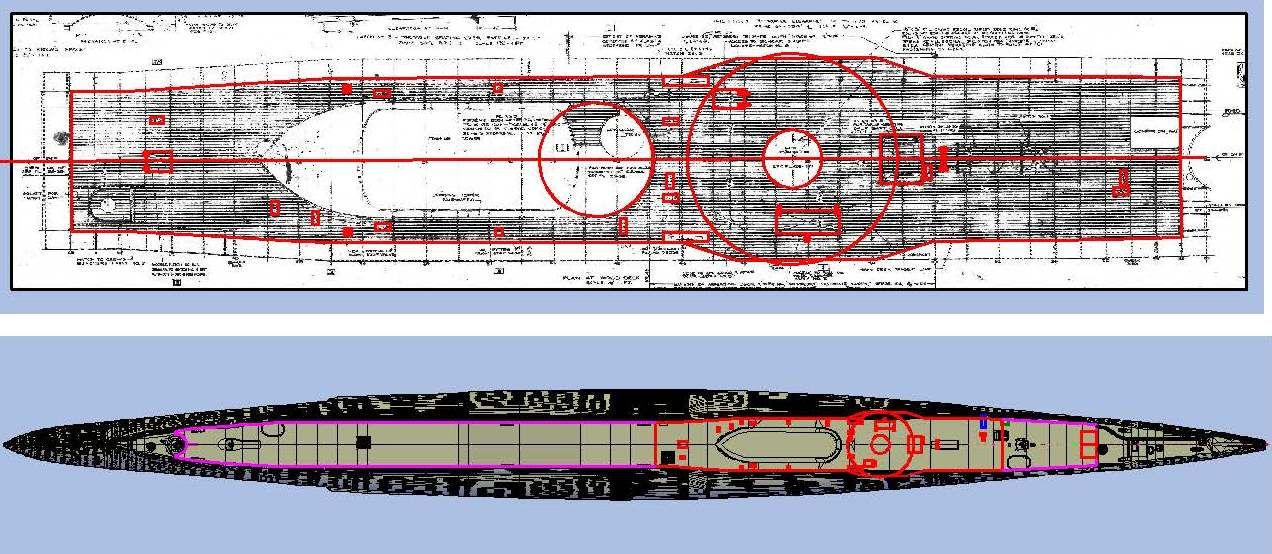 This inspired me to go ahead and make the part in both configurations, so I saved my “Batfish-144-Part08-Hull08†part as “Batfish-144-Part08-Hull08-OldMessengerBuoyâ€and went at it. I started with the plans tracing the (new) old round messenger buoy…