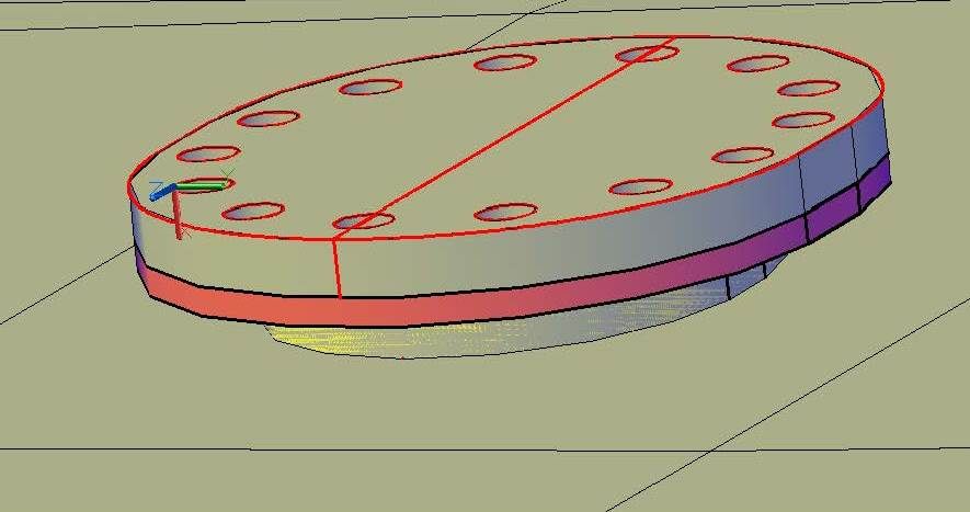 …Then subtracted it from the extruded oval, leaving the oval pretty much flush with the deck.