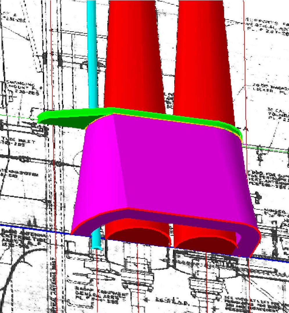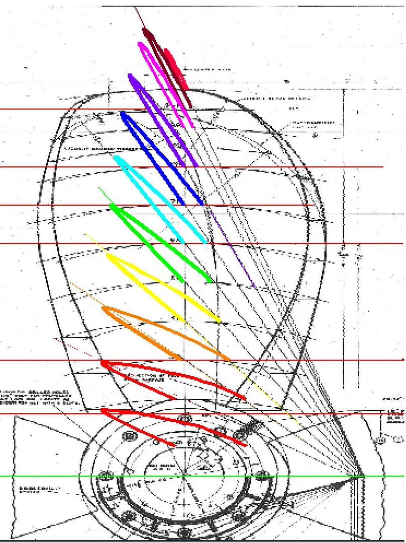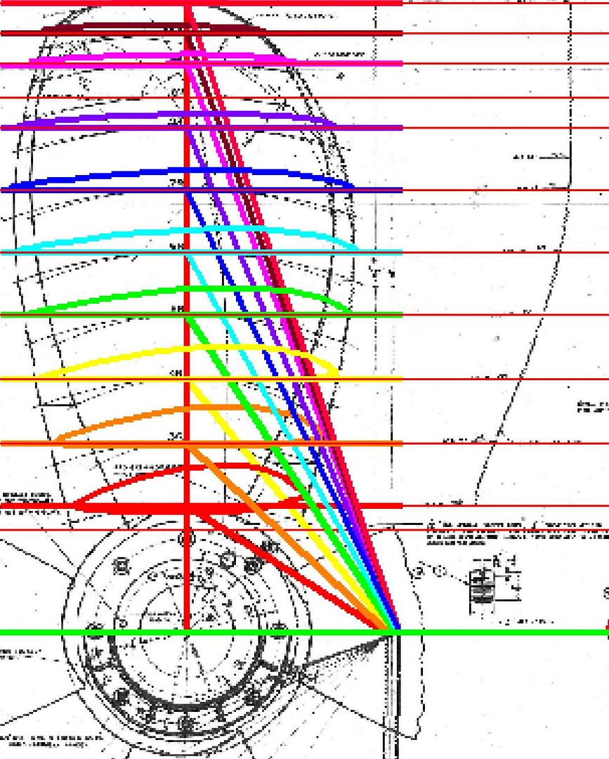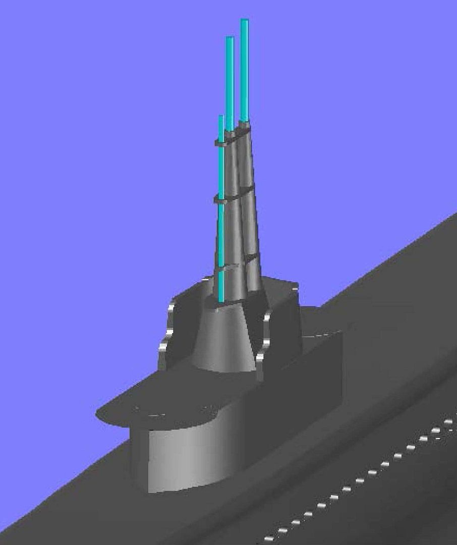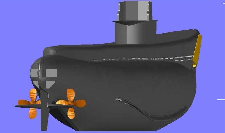 With the assembly completed, the next step was to copy and paste it into the Batfish drawing. I knew, more or less, what the horizontal positioning was, so I started by positioning the assembly at that point, but, in the end, the final positioning was done by eyeball. As you can see, this resulted in good alignment, and the two objects blend nicely into one another.