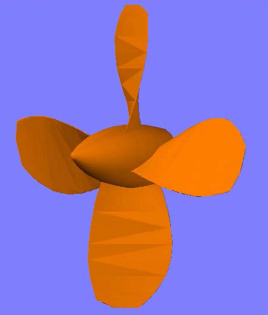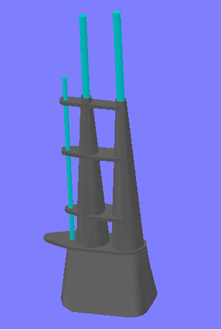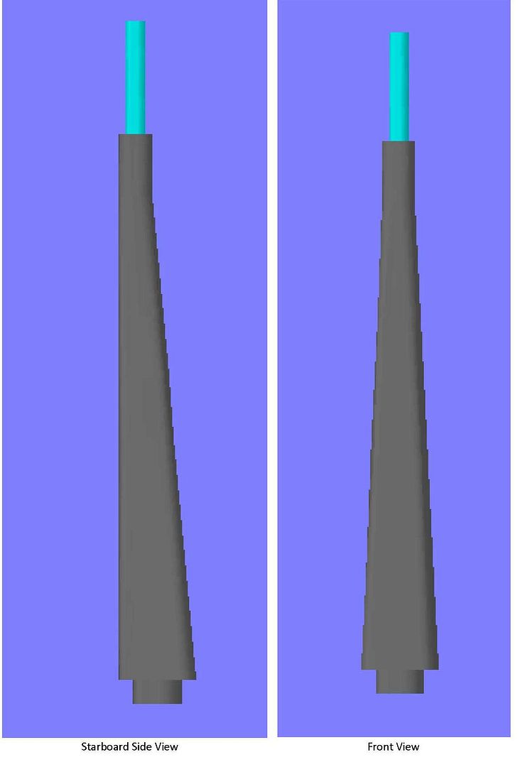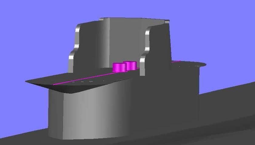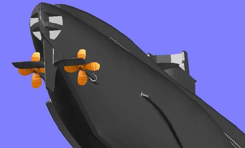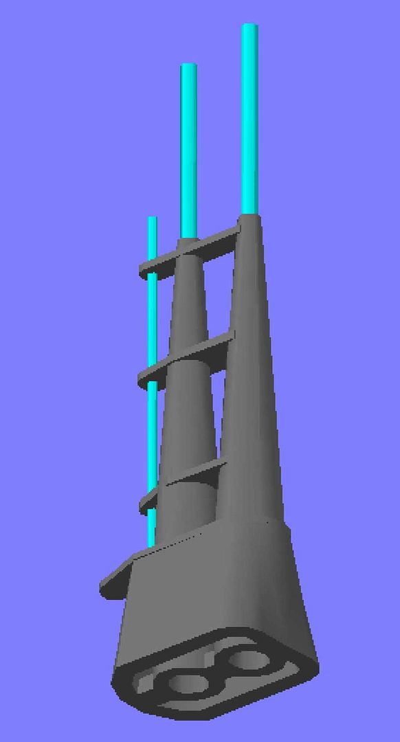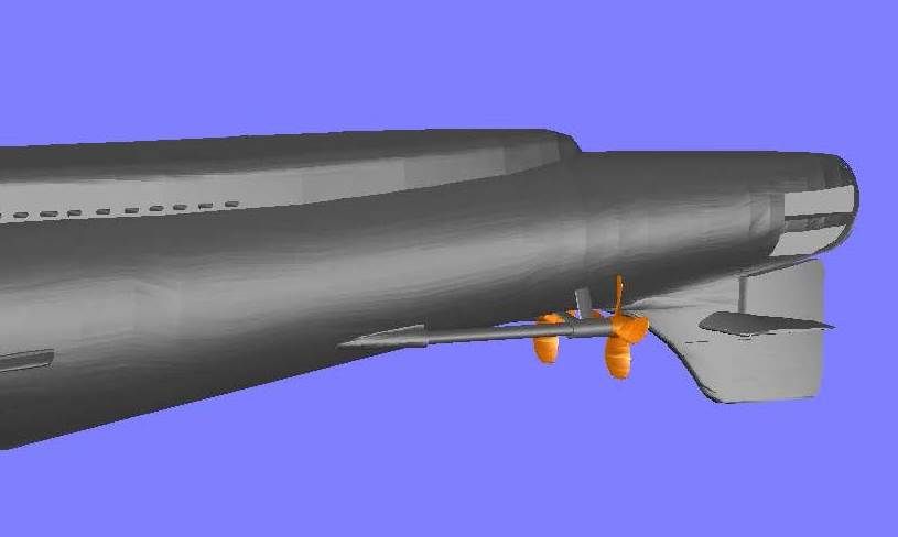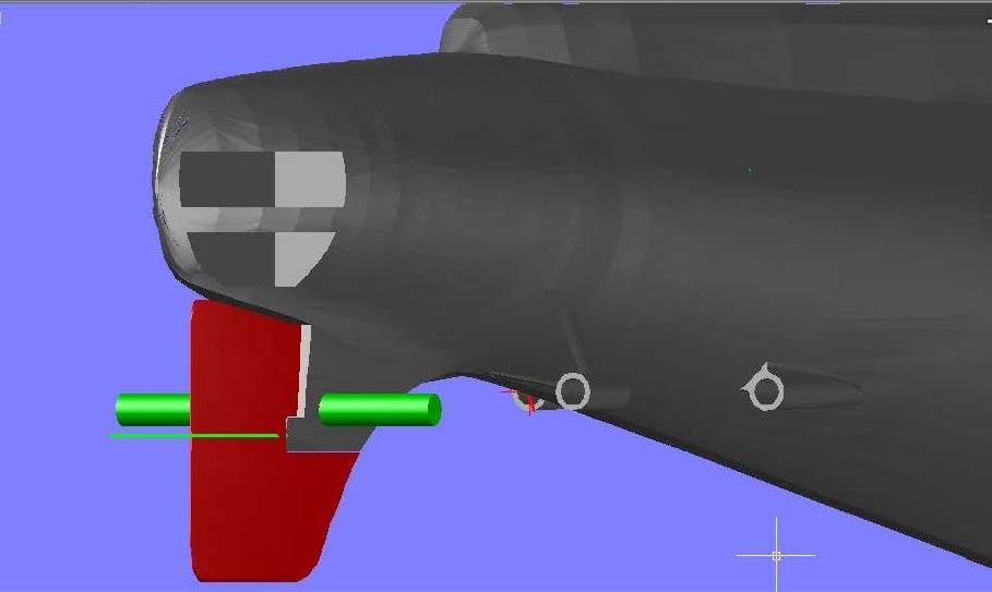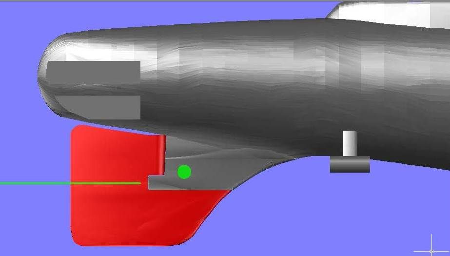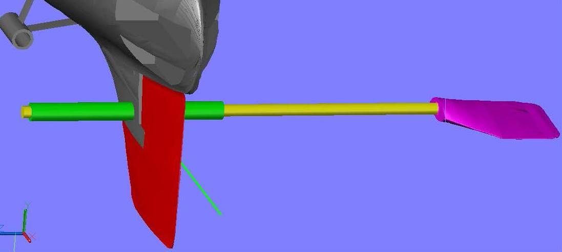 I then subtracted the cylinder from the rudder. Note that I didn’t “drill†too far into the lower rudder, leaving only a shallow hole for the shaft to sit in.