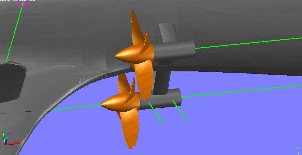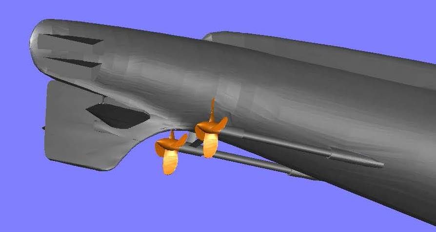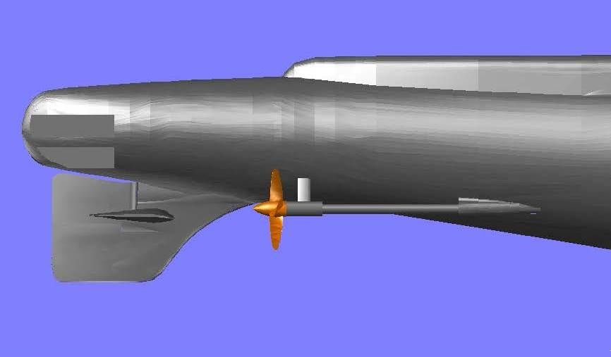 … So, using the same circle as I did with the rudder, I extruded a cylinder through the sternpost and subtracted it.