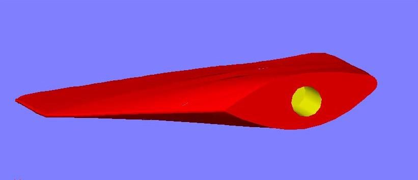 Before starting the sternpost, I realized that I needed to drill a shaft hole in the rudder. I did this by aligning a circle in the proper position and extruding it.