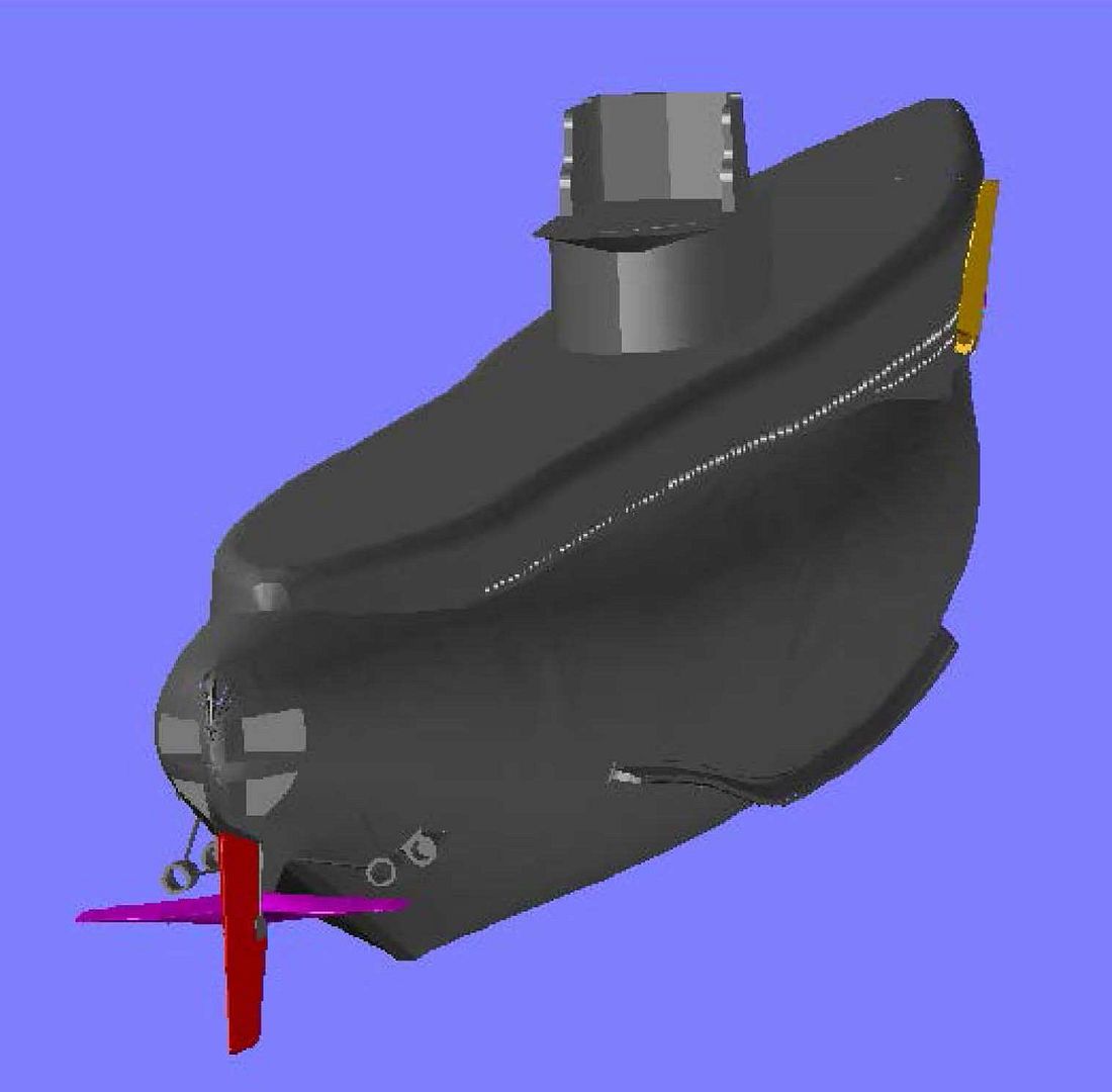 The final step was to attach the sternpost to the hull, and recolor it. In the process, I experimented with colors and decided to switch to a more “silvery†color. I left the rudder red at this point because it will be a separate piece. In fact, with the SLA, I could build it in place, and still have it be moveable, although it may be too small for this option.