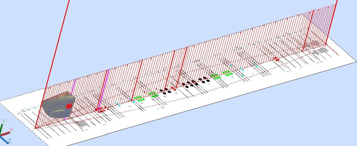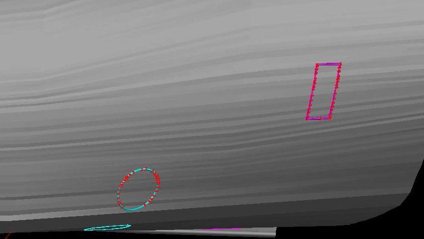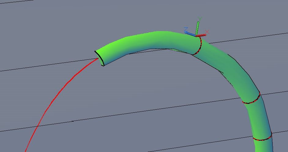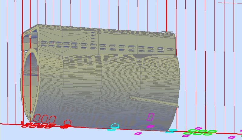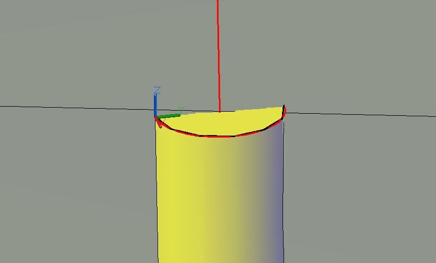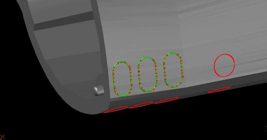 Because the circle extends into parts of the hull I didn’t want to cut, I sliced the circle at the line shown in the image above and made a closed polyline that didn’t intersect the sides of the tube area.