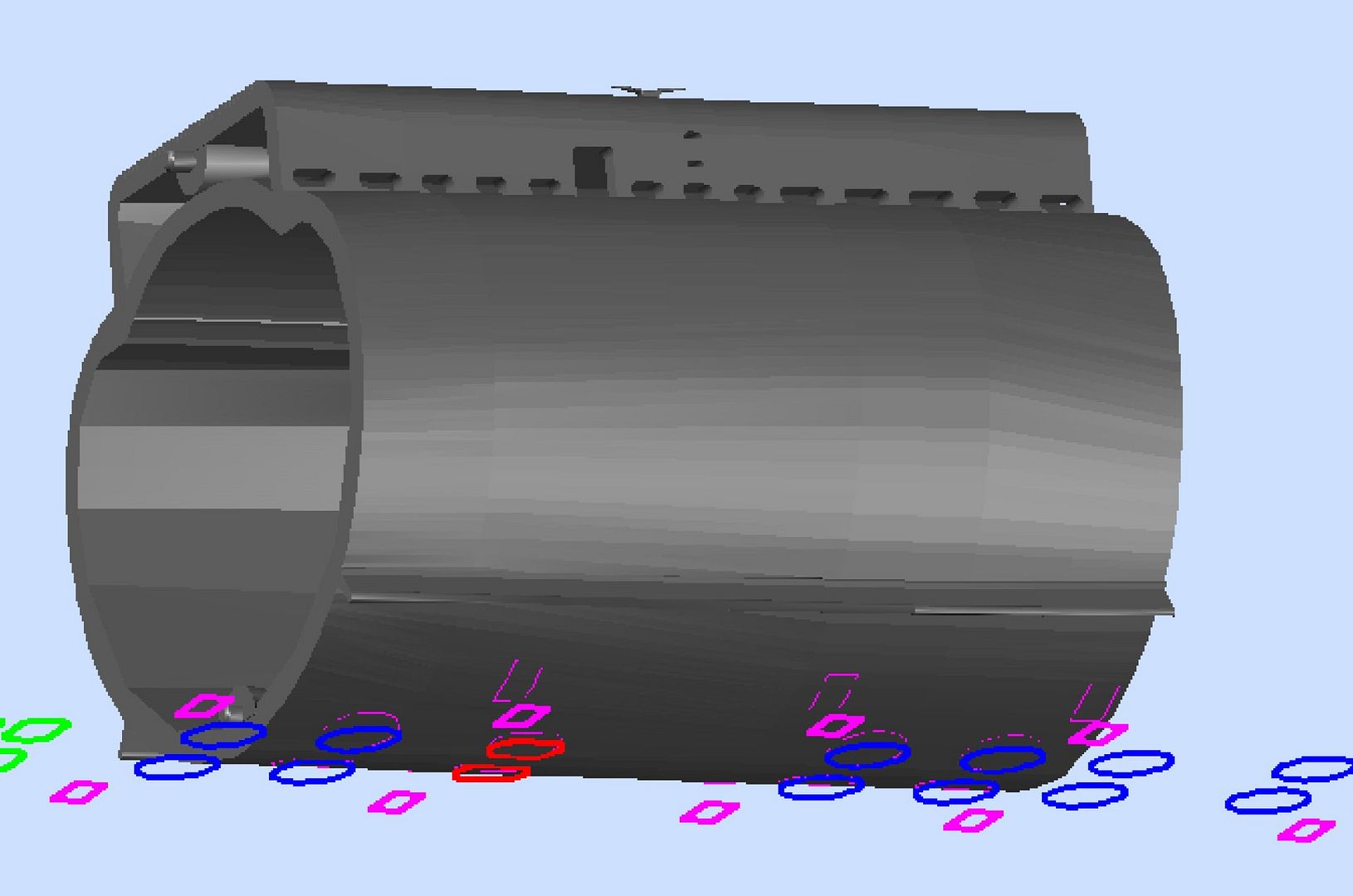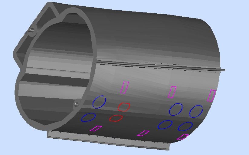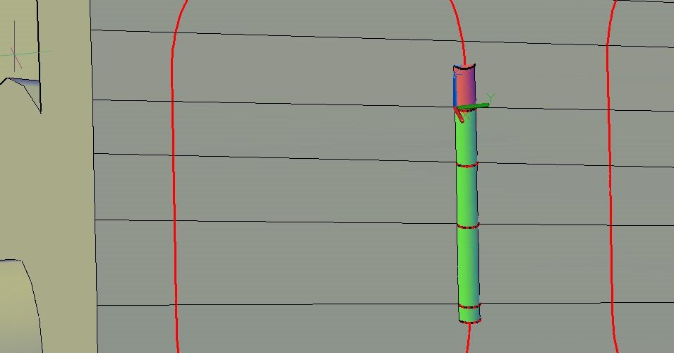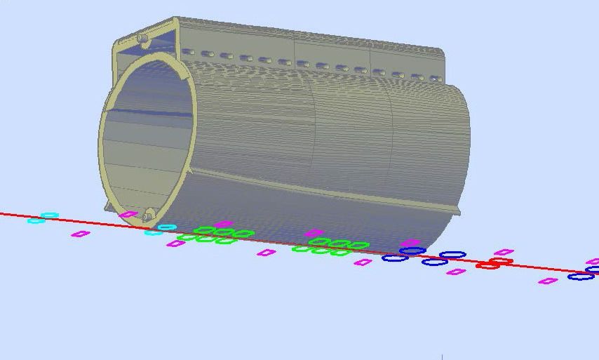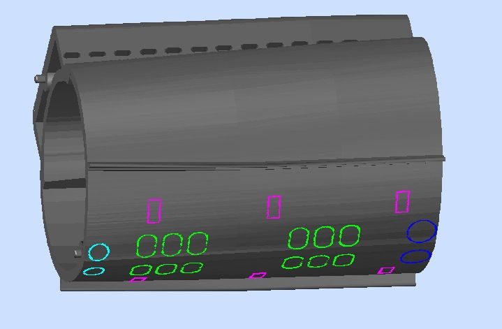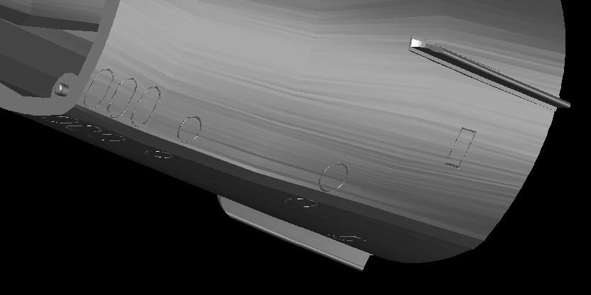 That got them to the right side. Next I copied them to the lower tube. I could have moved them but wanted to keep the original ones in case I goofed up. The image below shows it from end on.