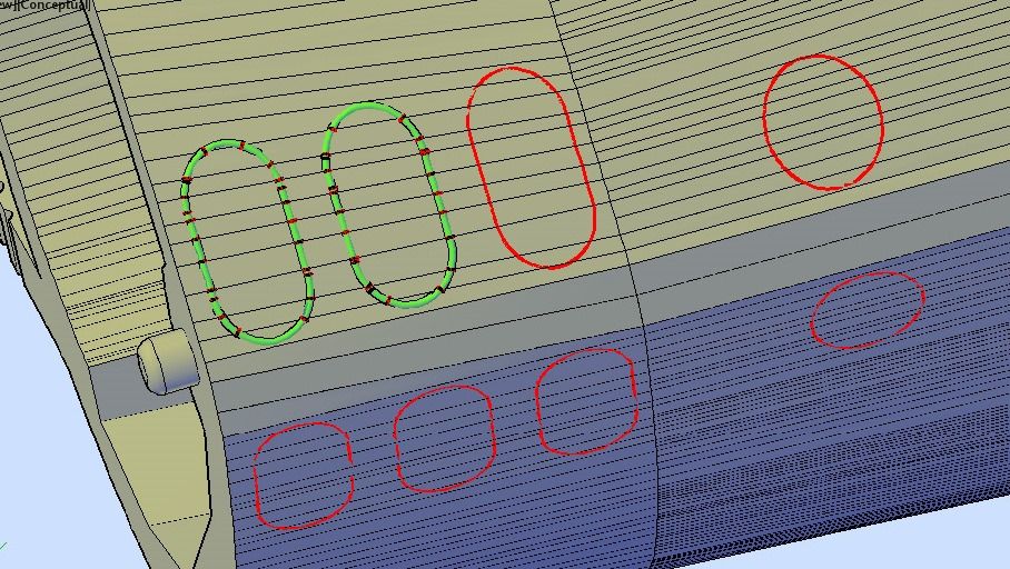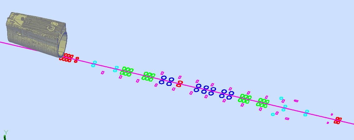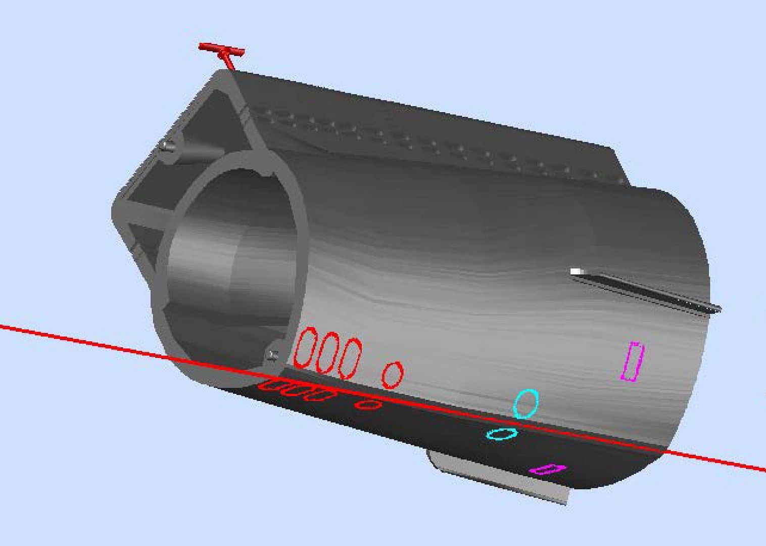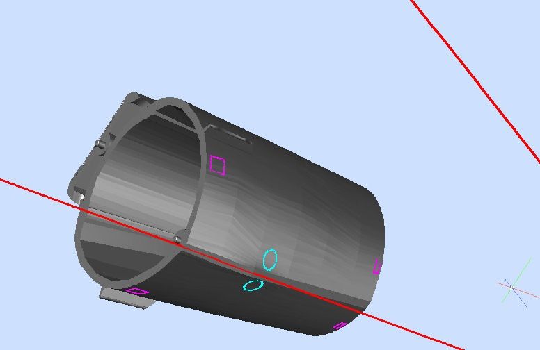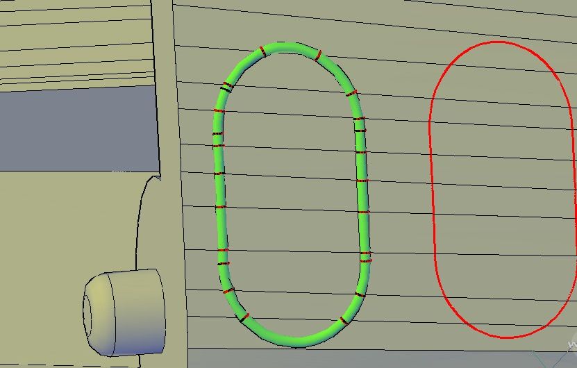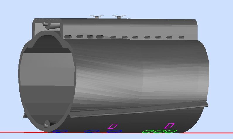 That got them to the right side. Next I copied them to the lower tube. I could have moved them but wanted to keep the original ones in case I goofed up. The image below shows it from end on.