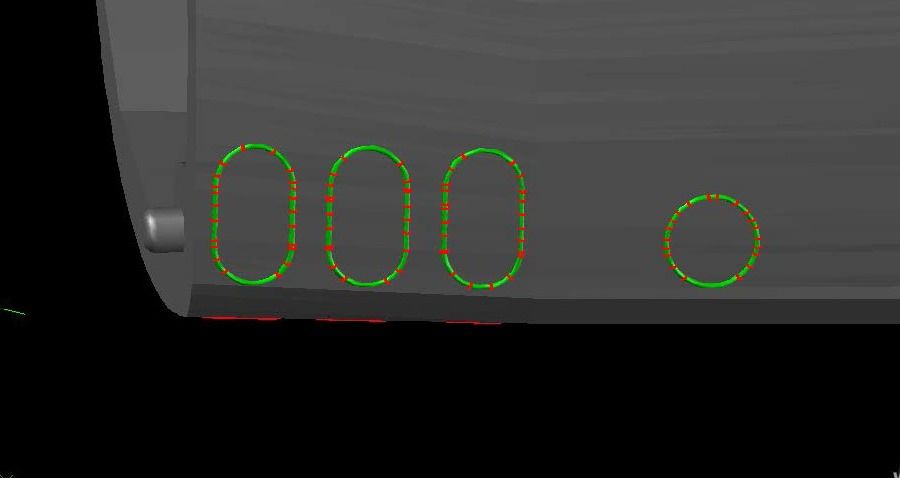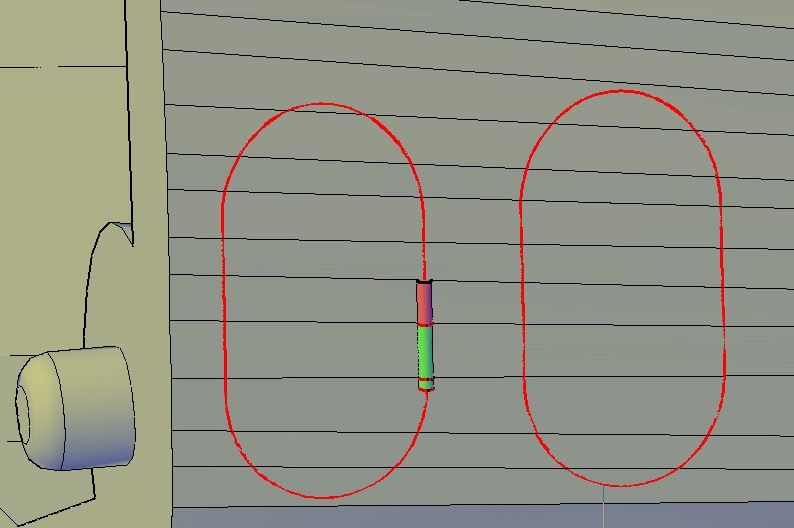 I then copied this poly line parallel to the rear bulkhead. I also copied it to the forward edge but note that the circle is on the edge. The router blade exits the model.