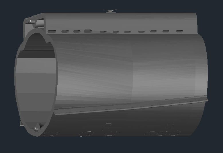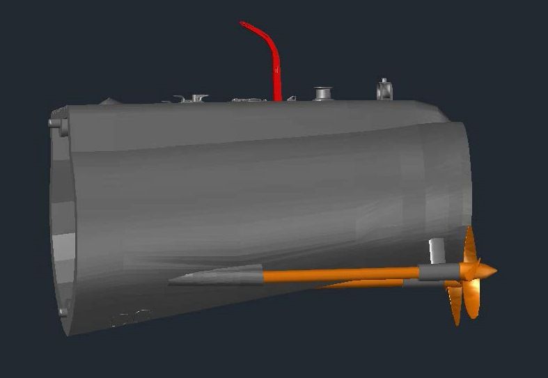 Parts 1-5 (with all attachments except the conning tower/fairwater) went from 57.5MB to 34.1MB and Parts 6-10 (with all attachments, and the torpedo) went from 37MB to 30MB. So just to put the hull components in one drawing would make it 64.1MB. BREP’ing had the biggest impact on the conning tower/fairwater. It went from 42MB to 7.7MB, but some of this reduction came from the deletion of all of the miscellaneous lines. This still makes for a 71MB file, and anything over 40MB really starts slowing my computer down.