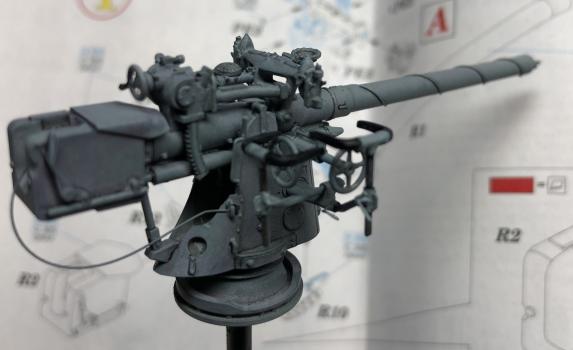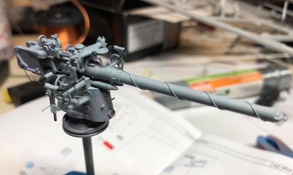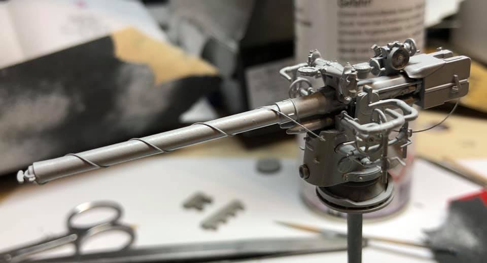 The 8,8 cm gun for my 1/48 Trumpeter VIIc. First coat of primer applied. Nice kit. Recommended...