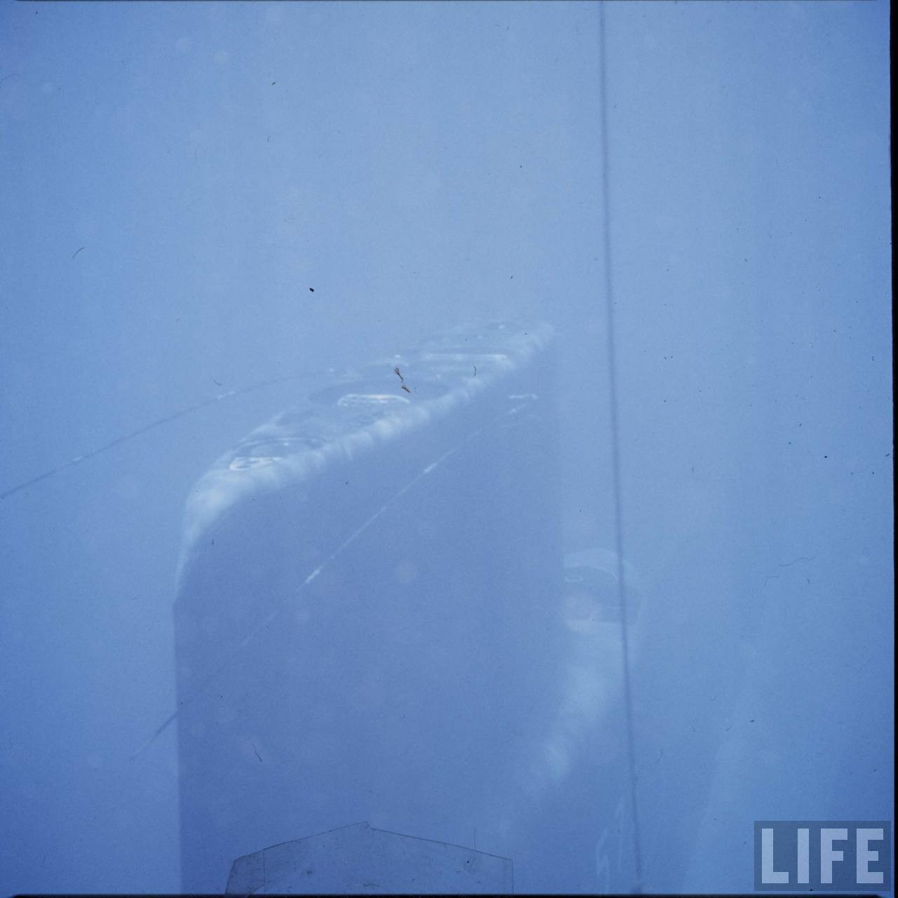I remember the bridge having more of a round shape, conforming to the leading edge of the lower section, adn housed a retractable bubble spray screen. This old shot barely shows it.