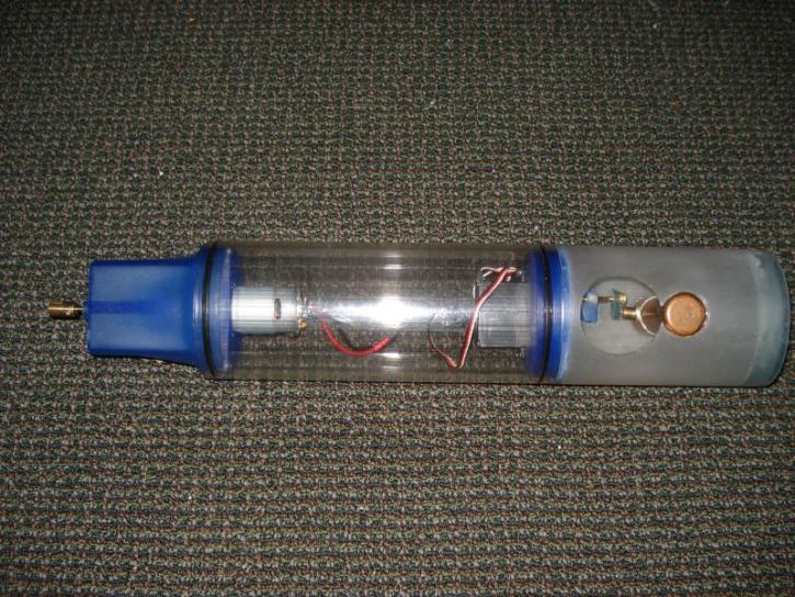 Small World Models (SWM) 3.25 (inch) WTC. The only electronics it comes with are the motor and basic servo for the ballast system. The "dry" area is 8 inches long and the ballast area is 5 inches long.
