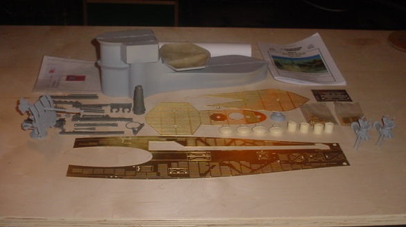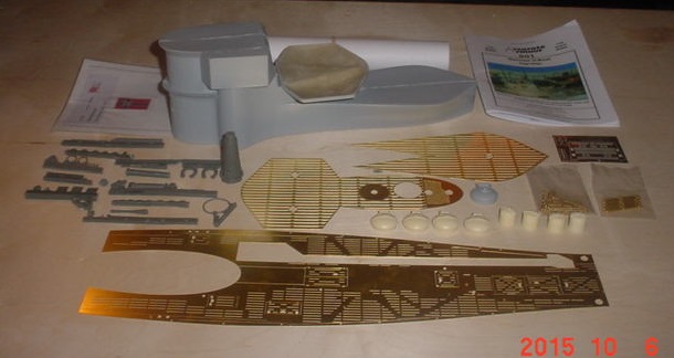 OTW 1/32 Type VIIC Extended conning tower. Complete Kit, Fiberglass conning tower with photo etched decks, Two twin 2cm Guns and one 3.7cm Gun, Guns are pre assembled from OTW. Turned brass stanchions and all of the cast parts for the Bridge. Complete Kit un started. Also comes with a Krieg's Flag and 4 Life raft pods for the Bow just as the later VIIC's have, This is the complete kit as supplied by OTW.