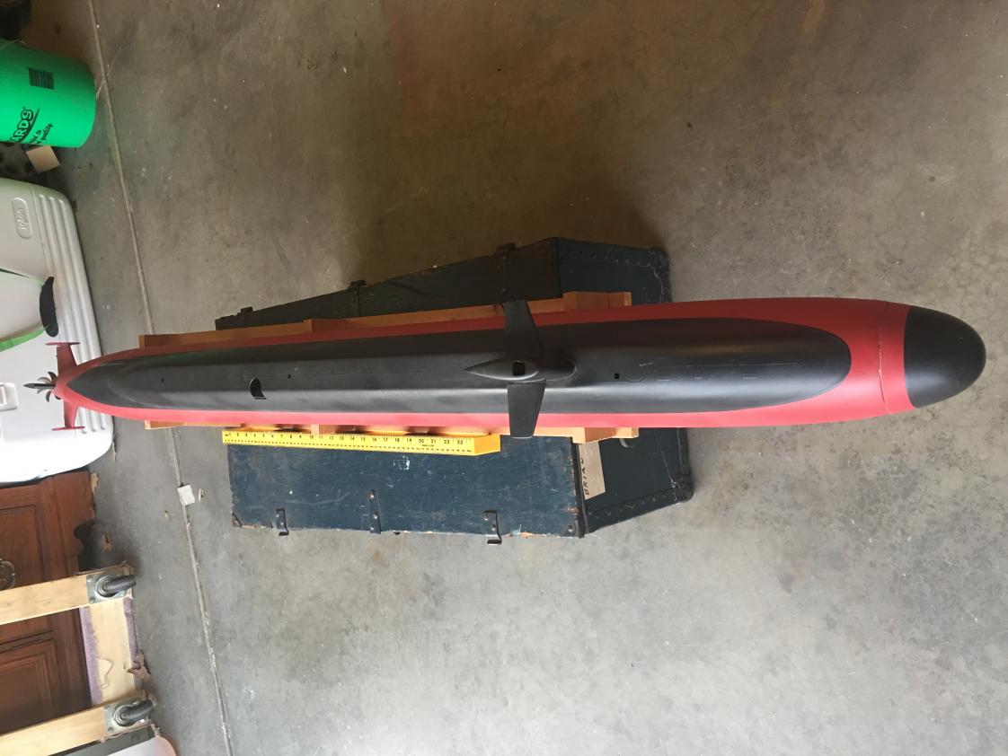 She's about 72" long, two piece fiberglass, WTC installed, ballast tank, ADC, APC, SubSafe, Motor, custom prob etc.