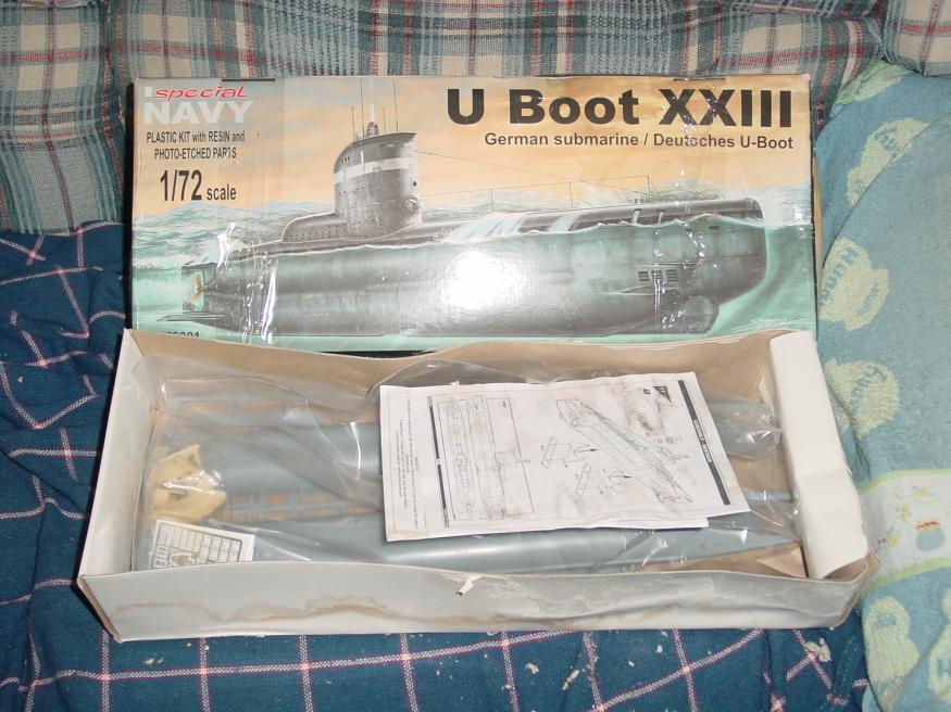 I have for sale a Special Navy 1/72 Type XXIII Model Submarine. It is perfect for R.C conversion. It comes in it`s factory box BUT box has water damage on ALL sides. The plans have seen some water BUT are clear enough to work from. All parts are still in their factory plastic bag.