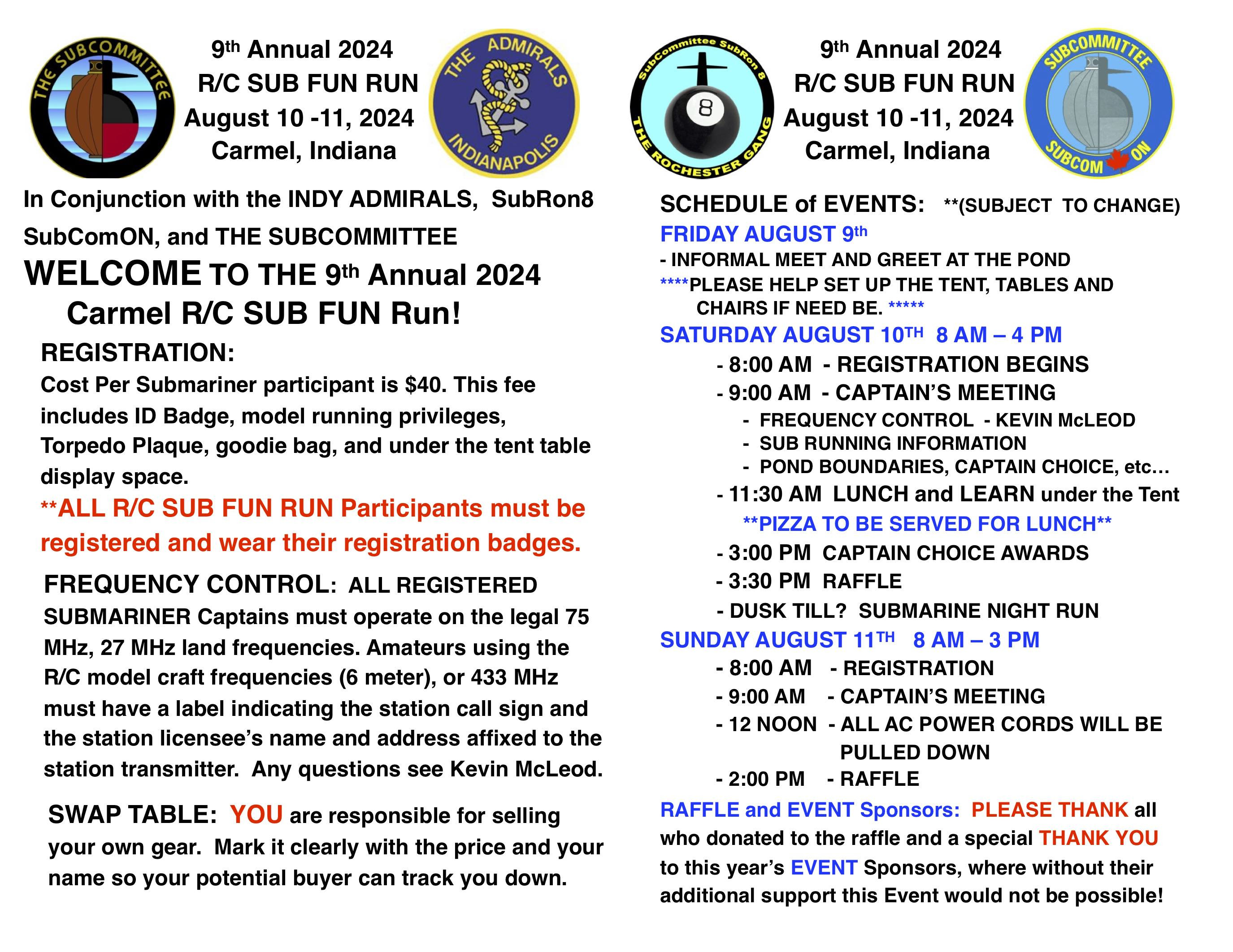 9th Annual 2024 Carmel R/C Submarine Fun Run INFO: