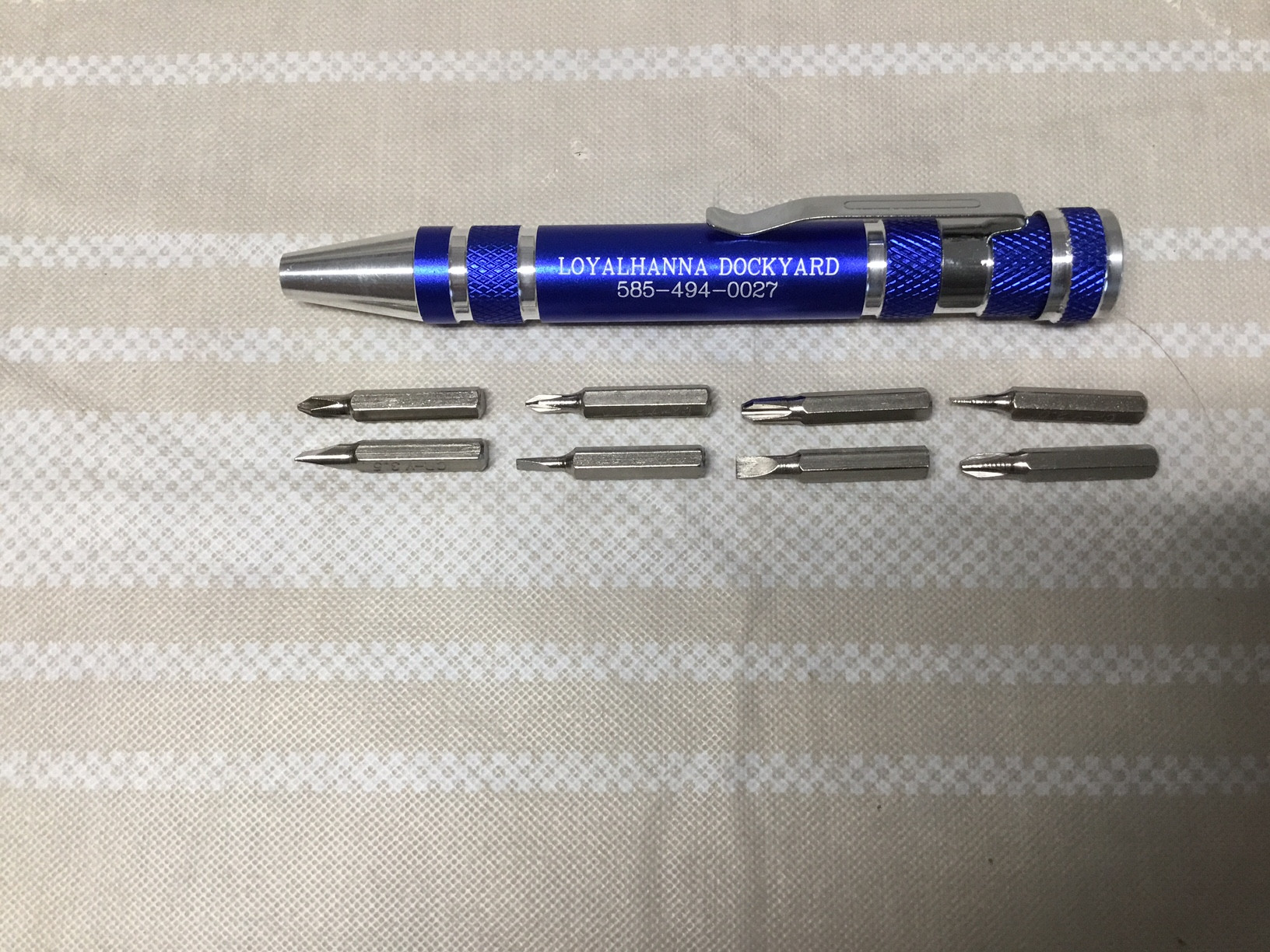 screwdriver that has 8 interchangeable bits. The bits are