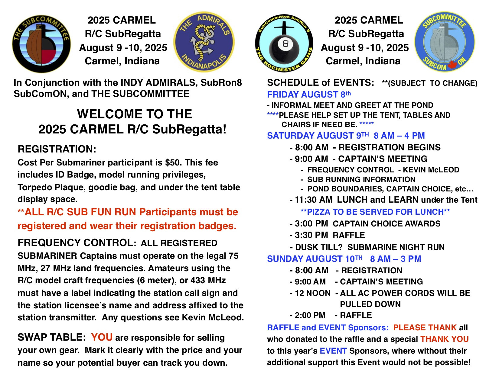 PRE-REGISTRATION FOR THE 2025 CARMEL R/C SUBMARINE SubRegatta is now CLOSED.