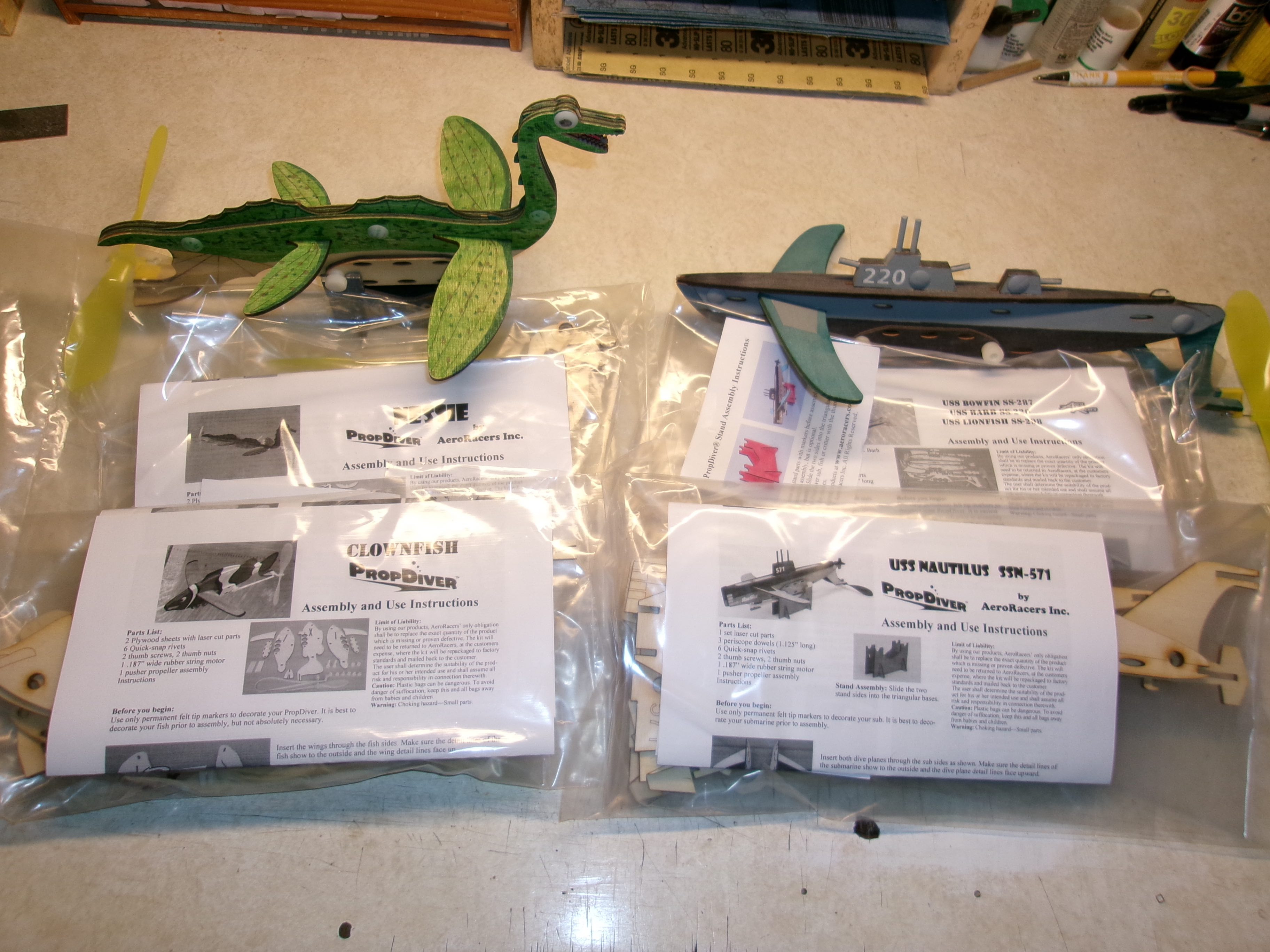 4 Aero Racers PropDiver sub models: Nessie; Clownfish (Nemo);