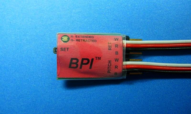 The BPI can be seen in operation here in Bruce Martin's Revel Gato. A retraction/extension cycle is demonstrated with the planes deliberately left in the full-rise condition to show how the BPI overrides the commanded position during retraction/extension.