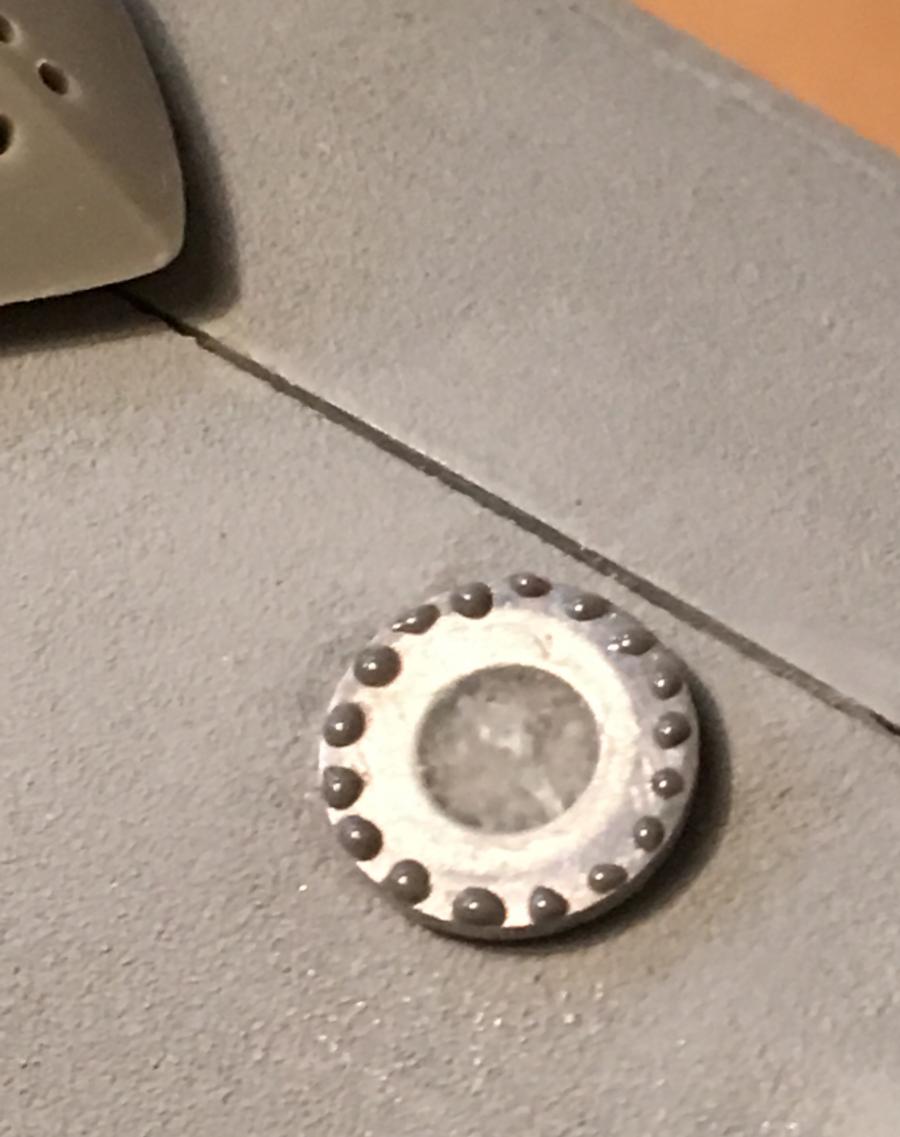 As with most of the Gatos, a bolted access plate appears aft of the turtleback on Harder's stern. Before Paul kindly reminded me there's an oval-shaped kit part provided for same, I made my own round one from a filled washer...which didn't turn out too badly. I employed JB Weld to create the bolts. Now I'm not sure which one I'll use. Guess I need to find out for sure if Harder's was round or oval. Sure looks round in the photo.